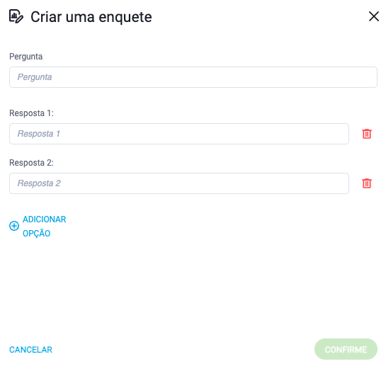 Depois de escolher a opção Criar enquete no chat, poderá inserir a sua pergunta e as possíveis respostas.