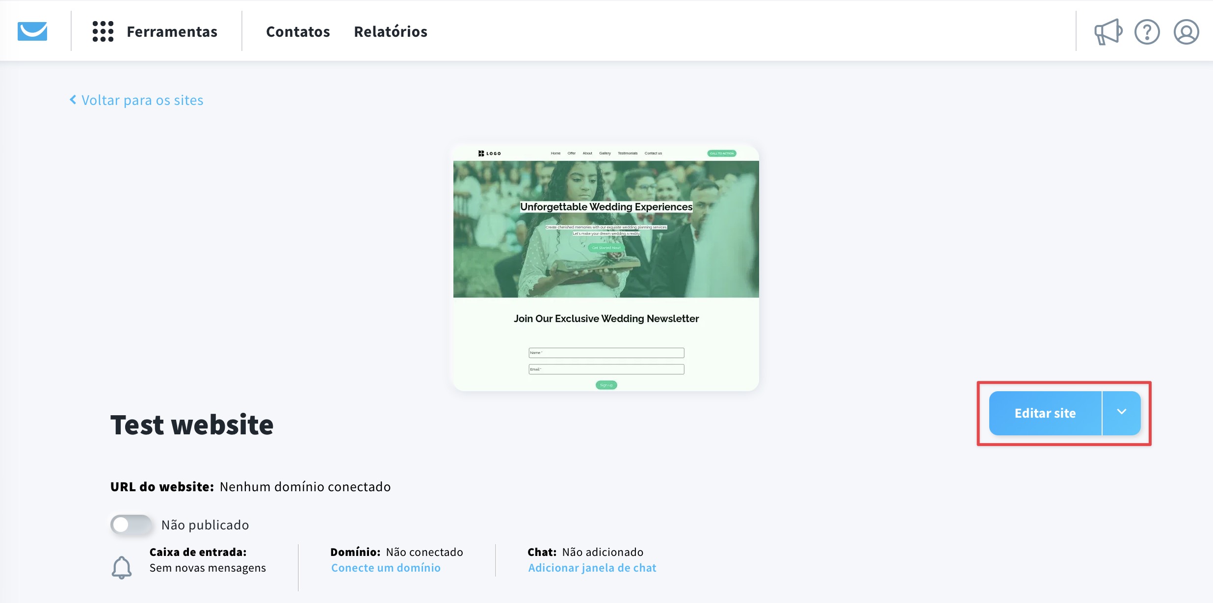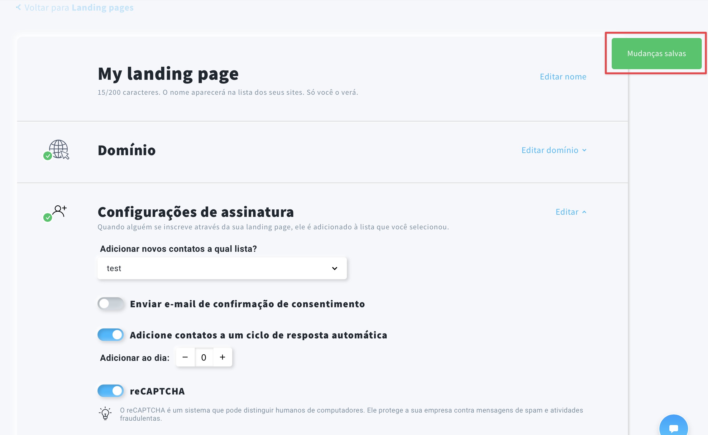 Os formulários adicionados por meio do nosso editor de Landing page ou Criador de Sites não oferecem suporte ao reCaptcha.