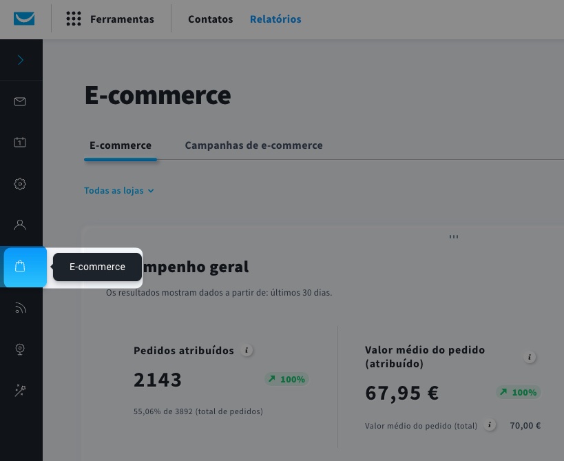 - Campanhas de e-commerce – estatísticas baseadas nas campanhas de e-commerce criadas por si