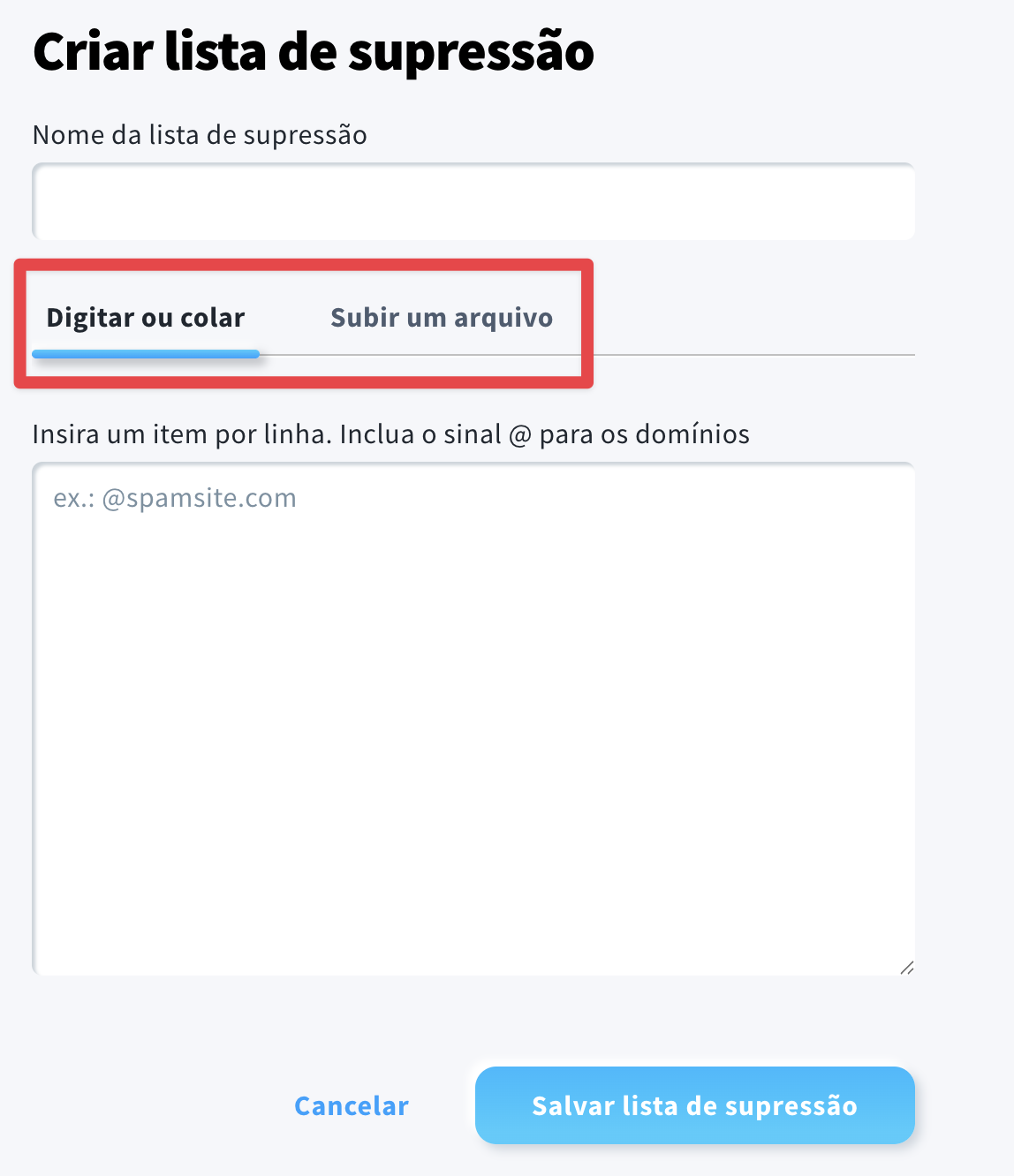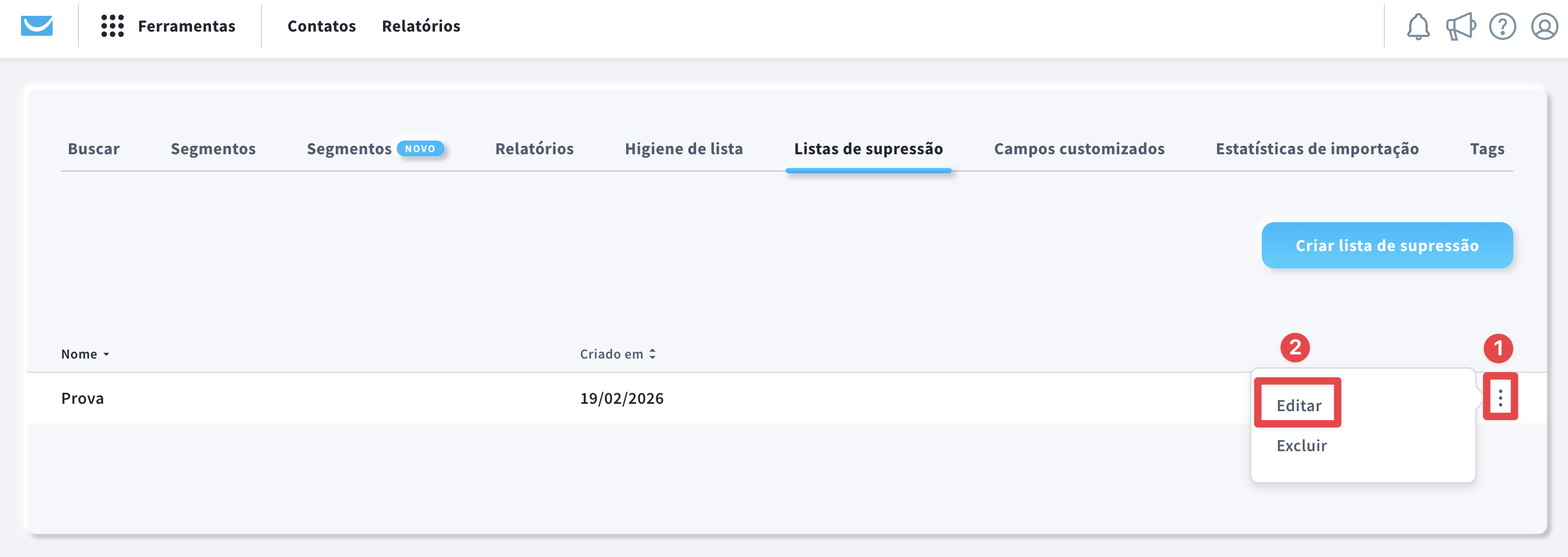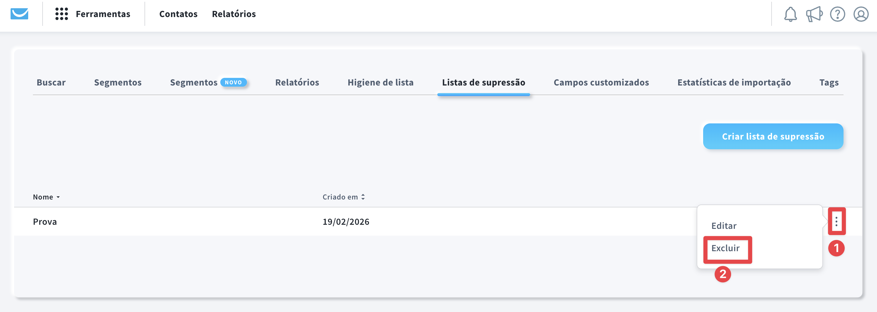 - Criar novas listas de supressão