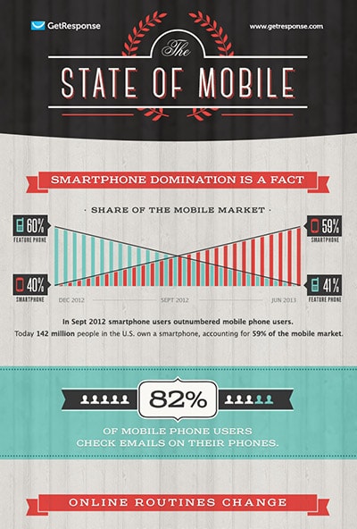 Recent figures on smartphone user routines, market trends and average email metrics by type of email client and display device