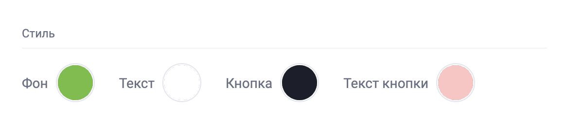 - В разделе Стиль выберите цвета для Фон , Текст, Кнопка, и Текст кнопки.